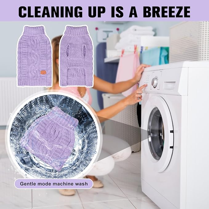 BEAUTYZOO Small Dog Sweater -Turtleneck Pullover Classic Cable Knit Fuzzy Winter Coat Dog Cold Weather Clothes for Small Medium Dogs Puppy Girl Boys,Purple S