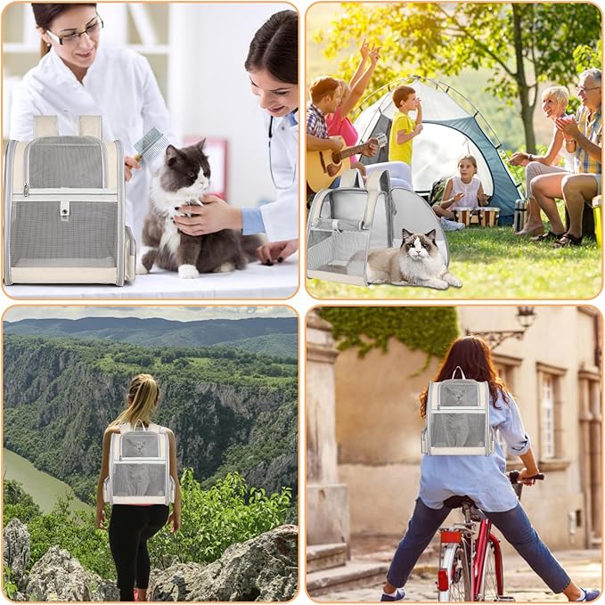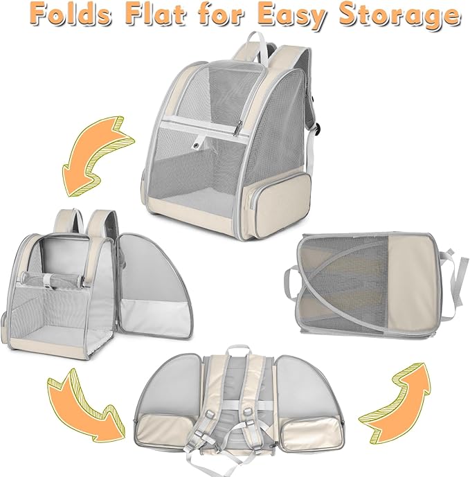 - Foldable & Ergonomics Cat Bag Carrier: You can easily fold up your cat carrier backpacks and it will only take up very little space. With back bulge ventilation design, padded adjustable shoulder straps and chest buckle reduce the pressure on the shoulder, back and waist.