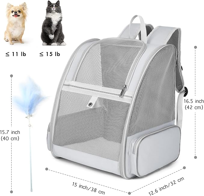 - Airline Approved Cat Backpack: The large pet backpack measures 15'' L x 12.6'' W x 16.5'' H. Perfect for pets under 15 lbs. Easily fits cats, small dogs, and most other small/medium-sized animals!【Most airline approved under seat. Please check your airline regulations before departure.】