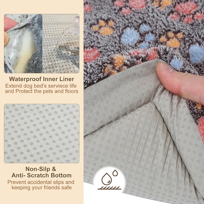 - Orthopedic Dog Crate Bed - Our cozy crate pads for dog cages have multi-color paw pattern plush flannel and high quality that provide ultimate relaxation, pressure relief, and joint pain relief for your furry friend. The material inside the dog crate mat promote air ventilation, keeping your puppy cool and comfortable all year round.