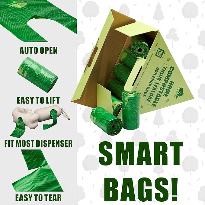 100% Home Compostable Dog Poop Bags With Handles 33% Thicker 8x Protection 150 Bags)