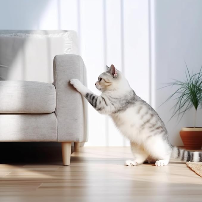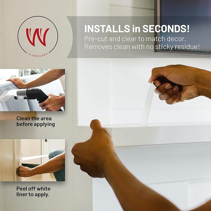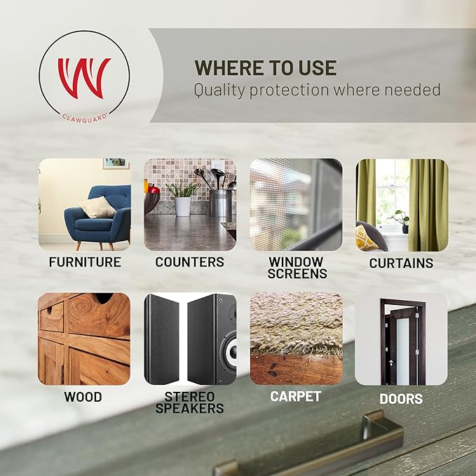 - [ SAVE THE FURNITURE AND DOORS ] Train and eliminate unwanted costly repairs and behavior. Clawguard Protection Tape for Dogs is a single-sided clear barrier scratch shield that protects your furniture. Clawguard Cat Training Tape No Scratch Tape keeps Cats off furniture and surfaces. Cats tend to dislike sticky surfaces and may avoid areas where our Double-sided tape is present. Medical grade safe for paws.