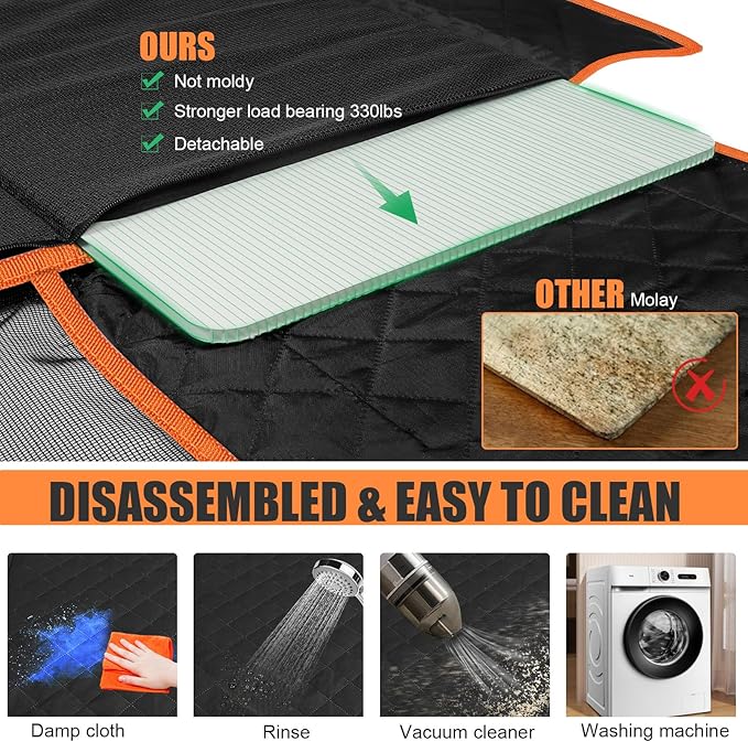 - ✅HARD BOTTOM DESIGN PET BACKSEAT EXTENDER:This unique design incorporates an internal PVC board that is removable, enhancing the stiffness and load-bearing capacity of the seat cover. It effectively prevents dogs from moving around or falling in the car and is easy to clean and organize,Extremely waterproof.
