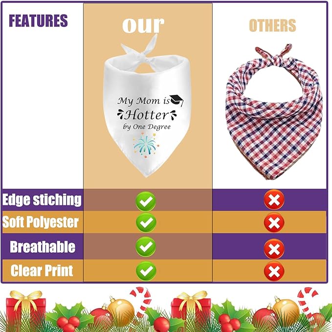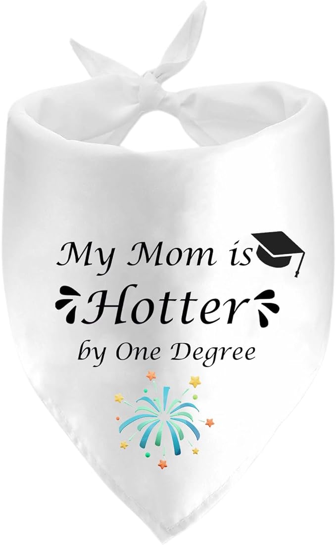 - 【Graduation Dog Bandanas】Graduation Dog Bandanas for Large Dog engraved with" my mom is hotter by one degree". Unique style make your pet look more cute and attractive. Suitable for wearing at the graduation announcement party.This is a cool graduation announcement gift for your pet at a graduation revealing. You will have a most memorable time with your pet!