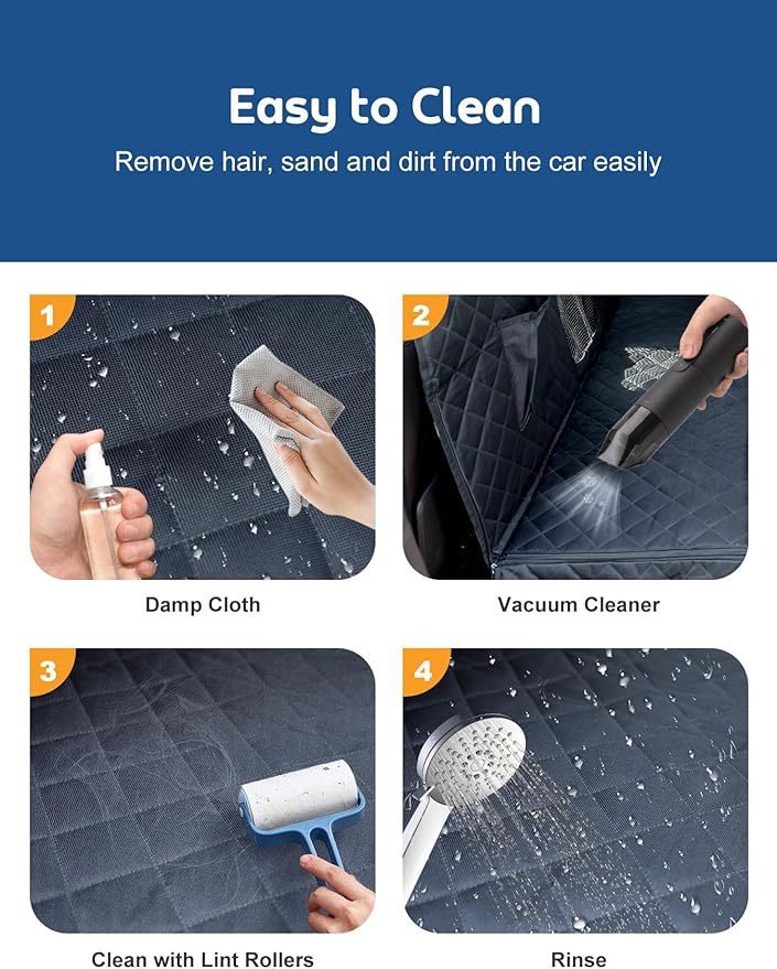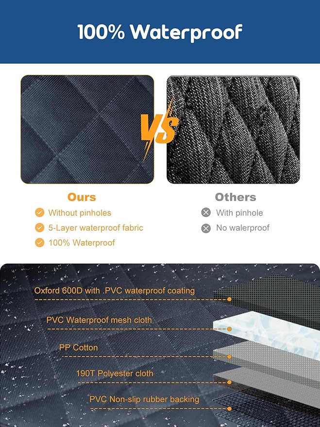 - 100% Waterproof & Wearproof: Made of 4-layer fabrics, this dog car seat cover is 100% waterproof to protect your seat from mud, liquid, hair, or any mess, durable to avoid scratching your leather seats, and comfortable for long road trip. No more endless sweep