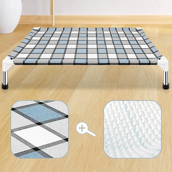 - 【Stylish Design of Dog Beds】Not only prioritizing comfort, our raised dog beds also emphasize stylish design. The minimalist blue and white grid design concept makes it an integral part of home decor, adding a unique touch of sophistication to your household.
