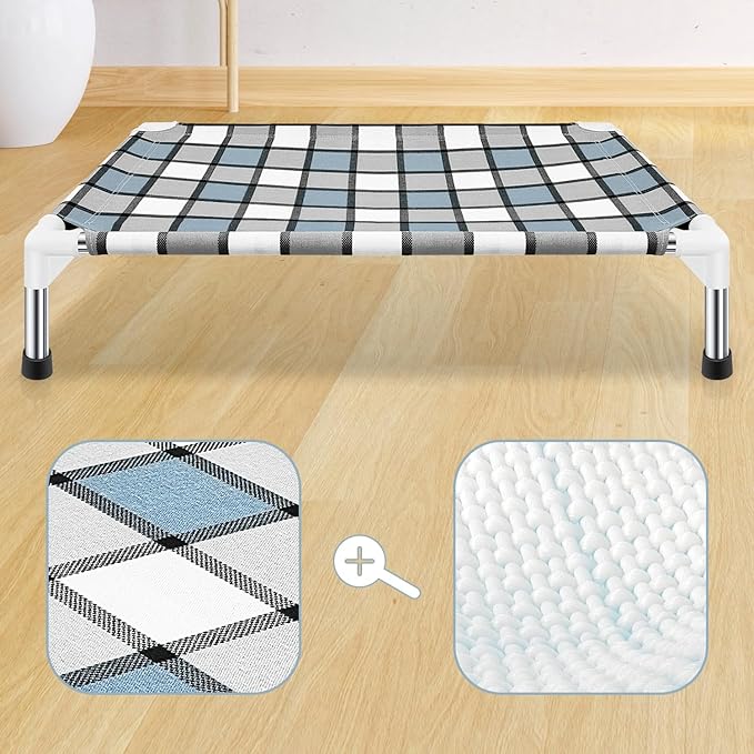 - 【Stylish Design of Dog Beds】Not only prioritizing comfort, our raised dog beds also emphasize stylish design. The minimalist blue and white grid design concept makes it an integral part of home decor, adding a unique touch of sophistication to your household.