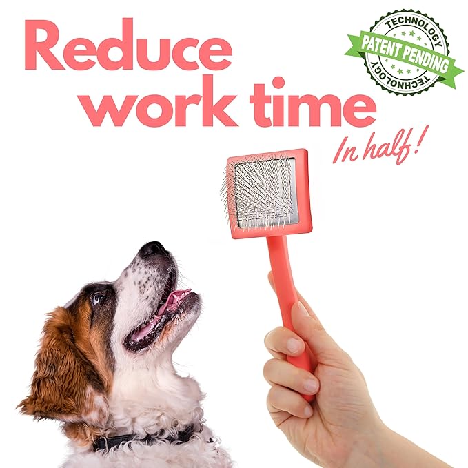 - LESS EFFORT TO IMPROVE GROOMING EFFICIENCY - Used by professional groomers, our fast and efficient dog and cat slicker brush features soft stainless-steel pins that gently brush away loose hair, undercoat, mats, and tangles.