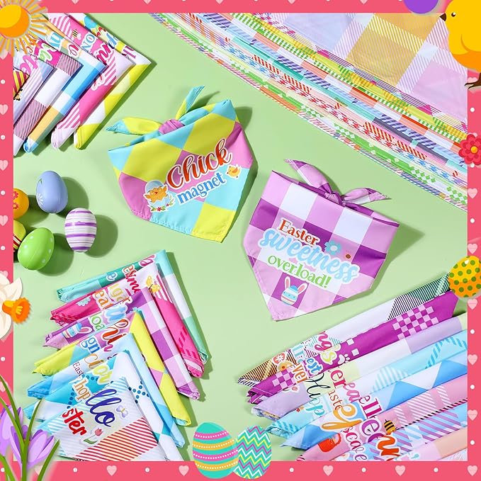 - Easter Themed Plaid Design: these dog bandanas are designed with diverse classic plaid patterns, featuring various Easter themed elements and sayings, they're festive and will make your pets look special and adorable during Easter week