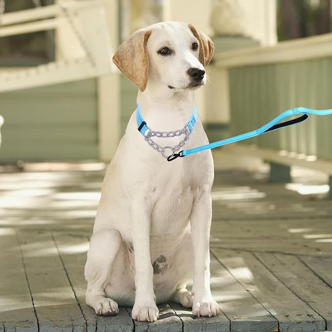 Martingale Dog Collar with Stainless Steel Chain and Leash Set 5FT Double