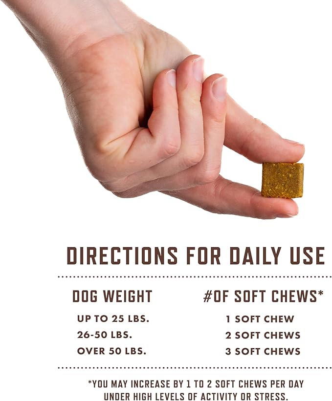 - Unparalleled Support: Our delicious duck-flavored dog supplement provides unparalleled support for your dog’s joint health and help maintain hip mobility; Our ingredients are sourced at high levels of concentration and purity, because your dog deserves the best; These chews ease joint stiffness due to normal daily exercise and activity, all while enhancing bone health and maintaining strong muscles—to support an active, healthier life for your dog