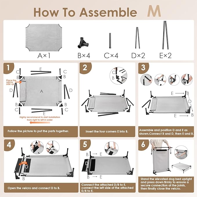 - Strong Support & Durable: With its sturdy 540GSM heavy-duty Teslin construction and an additional metal rod in the middle, EHEYCIGA elevated dog bed offers great support for dogs weighing up to 120 lbs.