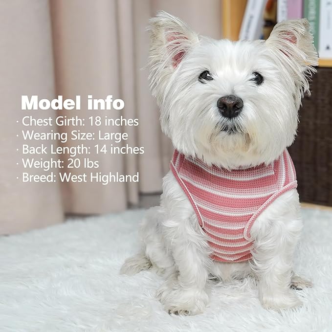 KYEESE 2Pack Waffle Dog Shirts Stretchy Dog T-Shirts Lightweight Dog Tank Top Sleeveless Striped Dog Shirt Vest Breathable