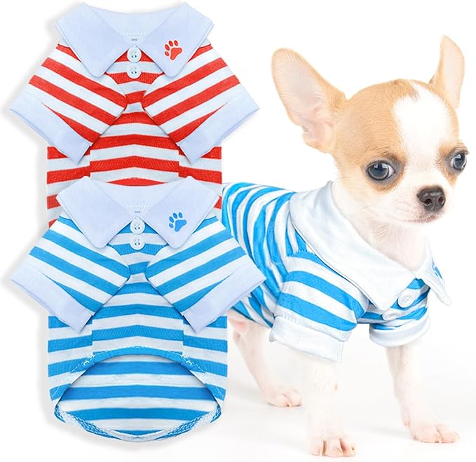 - - Summer Dog Clothes Suitable for Various Occasions - : 1 package contains 2 pieces stripe puppy shirt, Fit for four season wear and night pajamas clothes, also nice props for taking pet picture and a good choose of dog gifts for dog's birthday.