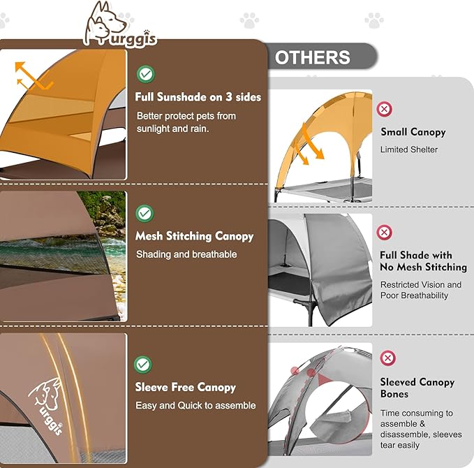 • Wider & Larger Shade Lifted Dog Bed: Comes with a large waterproof UV-proof canopy, this outside dog bed provides great shade than most other dog cots. Further more, with mesh piecing on 3 of the sides, this canopy will allow great air flow and will not block dogs' view. With this item, you will be rest assured when pets relaxing outside in summer;