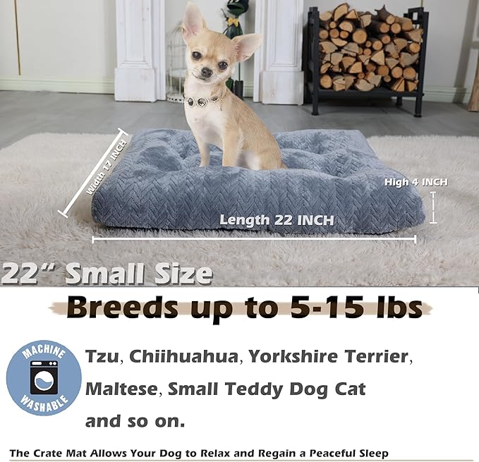 - Small Dog Mats for Sleeping:Our crate bed is made of ultra soft jacquard flannel material to provide your pets a comfortable sleeping experinenceon , the surfacewhich is soft enough to touch baby skin and filled with high-quality PP cotton inside. 22 inches are suitable for small-sized, especially elderly or disabled pets. Support joints, relieve stress points, and achieve deeper and more restorative sleep