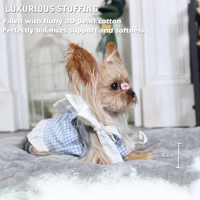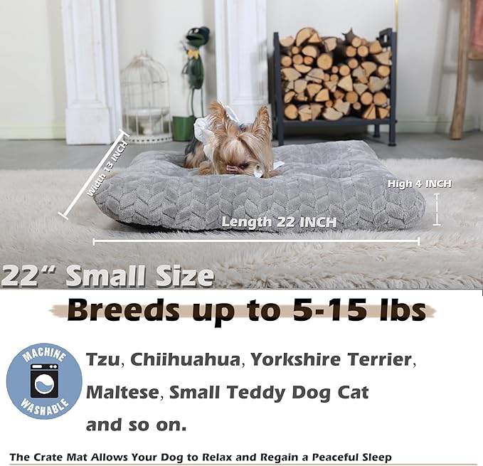 - Small Dog Mats for Sleeping:Our crate bed is made of ultra soft jacquard flannel material to provide your pets a comfortable sleeping experinenceon , the surfacewhich is soft enough to touch baby skin and filled with high-quality PP cotton inside. 22 inches are suitable for small-sized, especially elderly or disabled pets. Support joints, relieve stress points, and achieve deeper and more restorative sleep