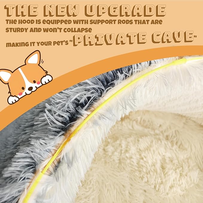 - ➤New upgrade--2-in-l cave dog bed: We pay attention to the health and safety of pets and are committed to creating a warm home for pets. The newly upgraded plush dog bed is equipped with support rods. Insert the support rods on the cover for use Makes a cave bed, very strong and won't collapse. Take out the support rod on the dog bed cover, the dog can rest and nap on the cover or lie in the cave, and the warm cover like a blanket covers the pet. The kennel is convenient for use in various occasions, indoors and outdoors.