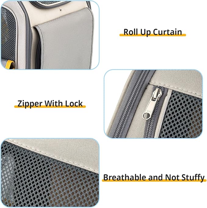 - 【Excellent Upgrade Design】It's very breathable with a few pockets,which are large enough to hold their harnesses & leashes and some food & treats. The extendable space for the pets is nice,it works for a sunbathing cat just fine,and this cat backpack has enough air holes for your animal to breath properly.