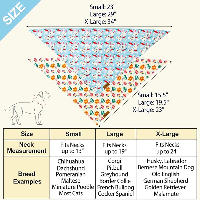 - Durable & Reversible: Made from soft, high-quality fabric, these reversible bandanas offer two charming looks in one; machine-washable and easy to clean, they keep your pet stylish for Easter and beyond