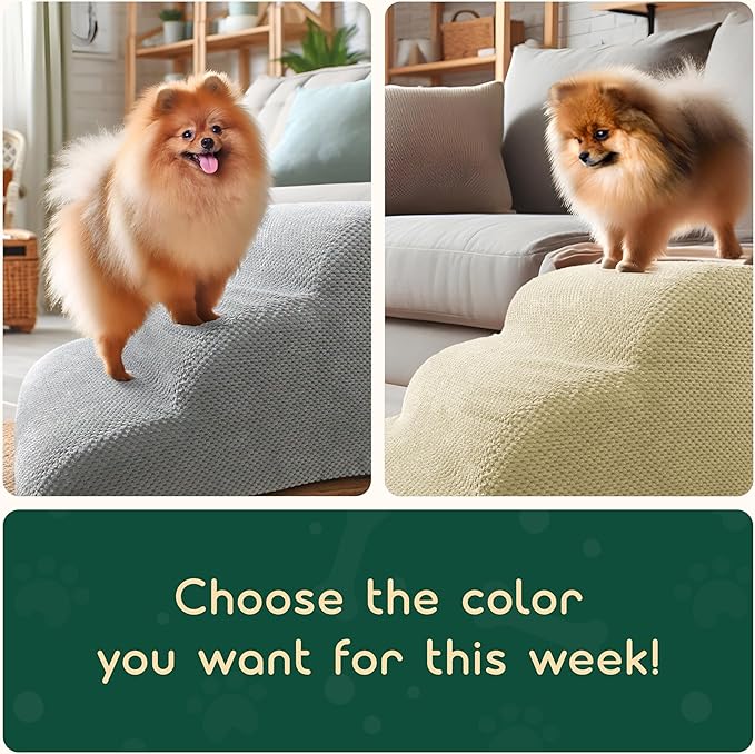 - 🐕 EASY CLEAN CONVENIENCE: With a high-quality double zipper, our foam dog stairs make it easy to remove the cover for washing or changing colors. Say hello to hassle-free maintenance and goodbye to pet messes. Keep your pet's world fresh and vibrant.