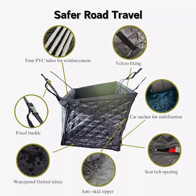 - HIGH-QUALITY MATERIAL: 600D Oxford cloth skin-friendly fabric is 100% waterproof and resistant to sticking hair and other dirt. The material is also durable enough for your pets to scratch the surface. The odorless material ensures a comfortable space for you and your dog in an enclosed car space, making driving safety