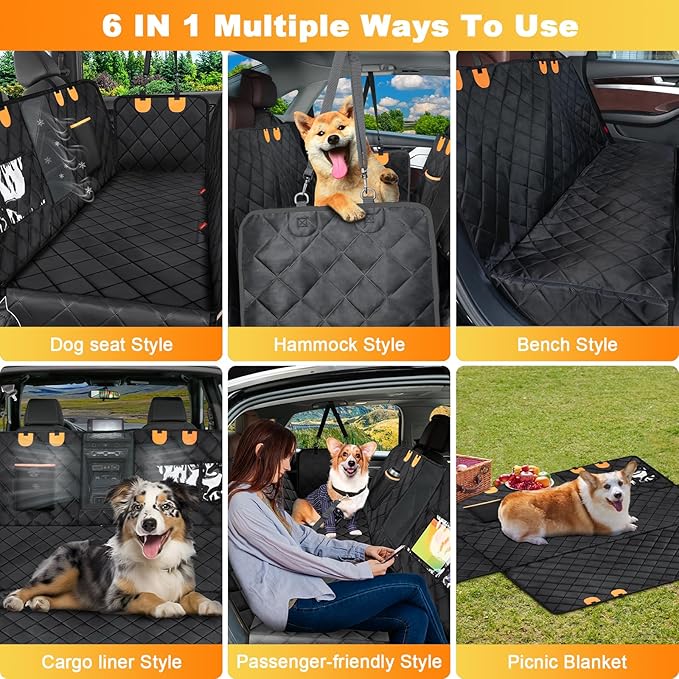 - CONVERSION BY ZIPPER&MESH VISUAL WINDOW&STORAGE POCKETS: Dog car seat cover for back seat is designed with zippers. You can easily convert it to the form you want by zipping in a second. The car hammock visual window provides a better air circulation and allows pets to see you clearly through the window which helps them reduce anxiety and keep calm when traveling. Additionally, the extra storage pockets are perfect for your pet's treats, toys and your phone