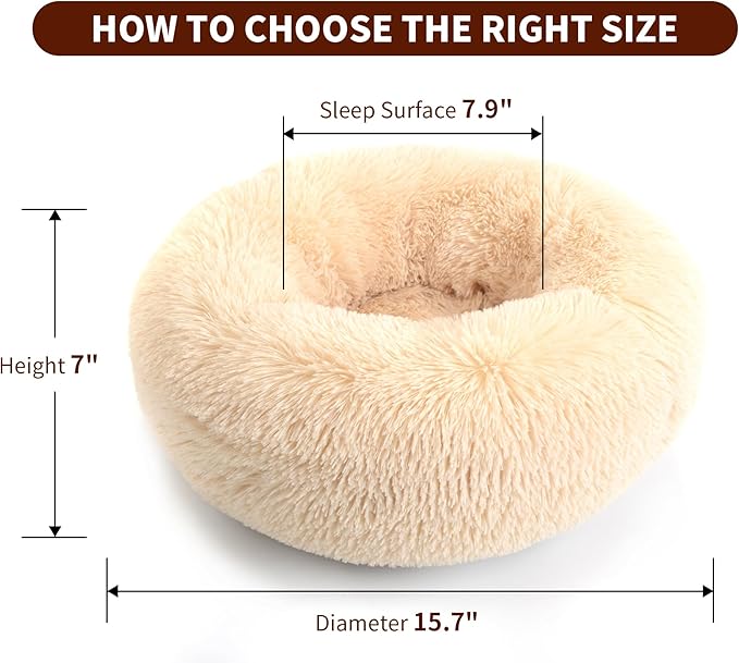 - Soft and comfortable: The cat bed is made of soft short plush fabric, filled with PP cotton, which is fluffy and comfortable, providing your pet with a warm and comfortable sleeping environment. The cat bed has a donut shape design, which is more comfortable for your hairy friends.