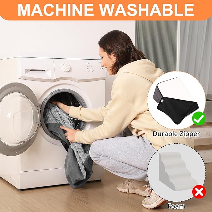 - REMOVABLE CLOTH COVER FOR EASY CLEANING - The bed stairs for dog come with a removable washable cover that adds to the convenience and hygiene of them. The cover is made from high-quality, durable materials that can withstand regular washing(both hand and machine wash) without losing its shape, color, or integrity. This ensures that the cover remains in good condition even after multiple washes.