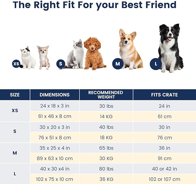 - MULTIPLE SIZES: This durable canvas dog bed comes in a variety of sizes for you to choose from! XS (24" L x 18" W x 3" Th), S (30" L x 20" W x 3" Th), M (35" L x 25" W x 4" Th), L (40" L x 30" W x 4" Th). We have dog beds for small, medium, large breeds.