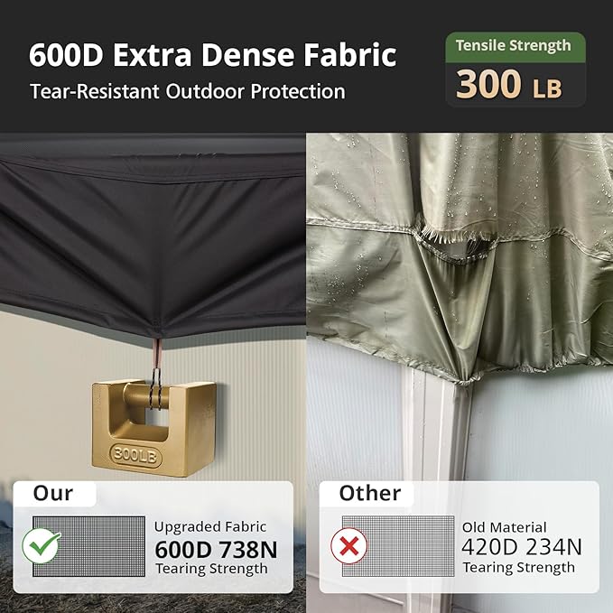 - 【Unbreakable Tear-Resistant Material】 QH.HOME round pool cover is made of 600D extra dense and thickened strong tear-resistant oxford fabric, the overall tear strength is up to 738N, common material is only 234N. All seams are double stitched, and added the sealing tape, we tested the position of the seams that are the most likely to be torn according to the market feedback, and added 300LB of heavy weights did not have any tearing problems.