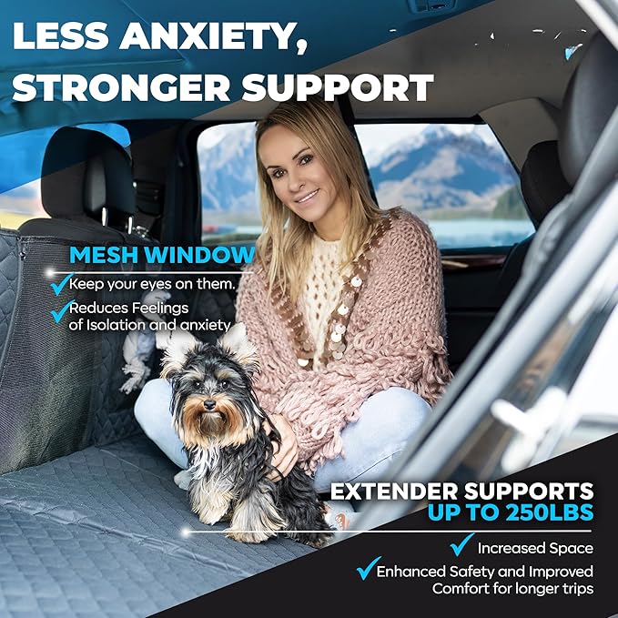 - EXTENDED COMFORT: Our back seat dog cover hard bottom doubles as a dog car seat extender, providing extra space for your pet. The back seat pet cover for dogs hard bottom fits seamlessly in SUVs and trucks, enhancing travel comfort.