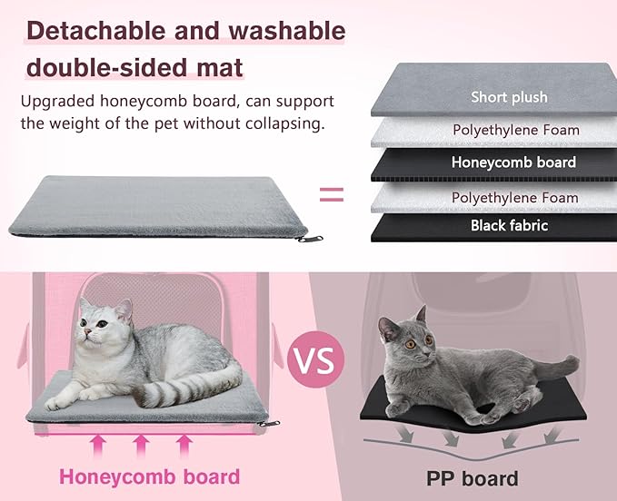 - 【 GREAT VENTILATION & COMFORT 】: Comes with 4-side breathable mesh windows, giving plenty of air for pets. Makes it easy for you to observe the movement of your pets while they are enjoying the scenery outside. The pet backpack carrier offers multiple ways to let your pet in and out with ease. To enhance comfort, the pet cushion is placed inside the bag's bottom and has a removable, washable cover. This ensures your furry friend has a perfect spot to rest while on the go.