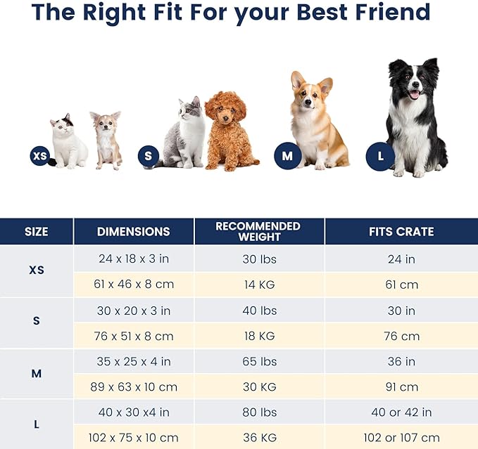 • MULTIPLE SIZES: This durable canvas dog bed comes in a variety of sizes for you to choose from! XS (24" L x 18" W x 3" Th), S (30" L x 20" W x 3" Th), M (35" L x 25" W x 4" Th), L (40" L x 30" W x 4" Th). We have dog beds for small, medium, large breeds.