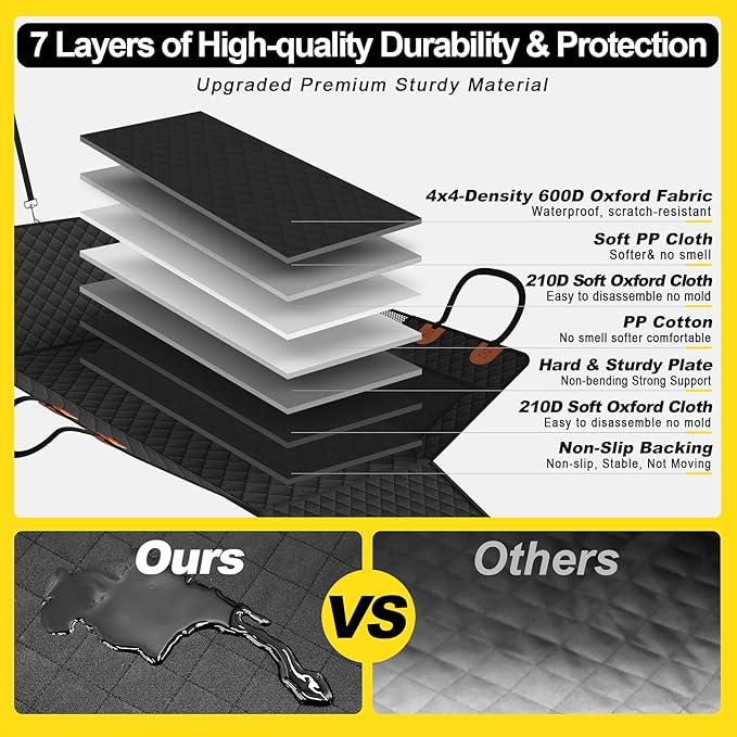 - 【6-in-1 Multifunctional Dog Hammock】 Buy one dog back seat cover and get six styles to use! Including car dog hammock, passenger-friendly, dog front seat cover, bench back seat cover, trunk cargo liner and picnic mat. Whether you are going camping, going to the beach for vacation, or just driving quickly to see the vet, there is always one that suits your needs.