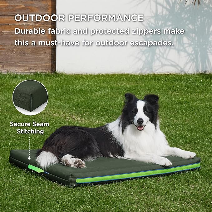 Bedsure Chewproof Durable Outdoor Waterproof Dog Bed with Heavy Duty Cover (36"x27", Moss