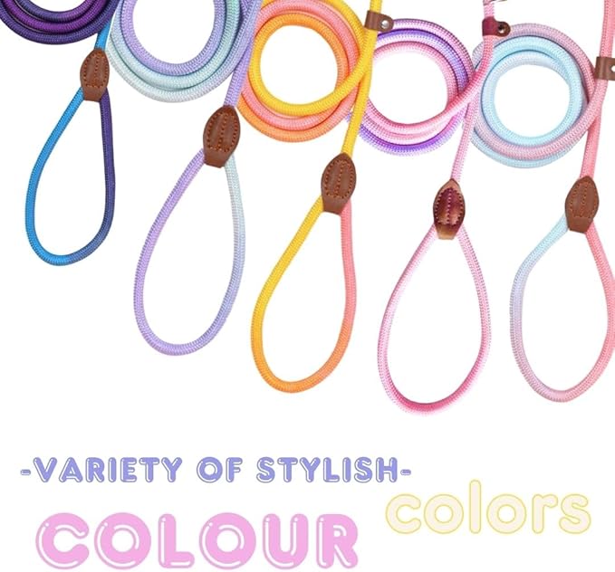 - STURDY SLIP LEAD DOG LEASH - This upgraded slip lead dog leash is made of high quality nylon braided rope, which is very comfortable and soft to the touch. High quality leather clips and sliders on both ends of slip rope leash greatly enhance the durability and sturdiness of dog slip lead.