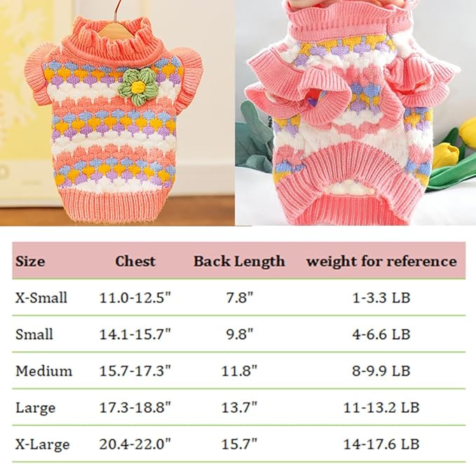 - [ Size Information ] : Medium sized puppy sweater Chest girth/16.5”; Back length/11.8”, suit for weight about 5-8.8 LB,Pls choose large one if between 2 size