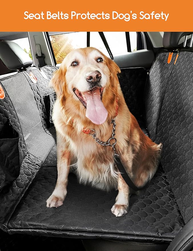 - 🚘【Safety Upgrade】The non-slip design on the bottom of the dog back seat cover reduces the cushion from sliding or shifting to avoid scratching your leather seats. The safety leash design effectively protects your dog's safety. Dog Car Hammock with zippered side wings protects your dog from injury during emergency braking and turning.