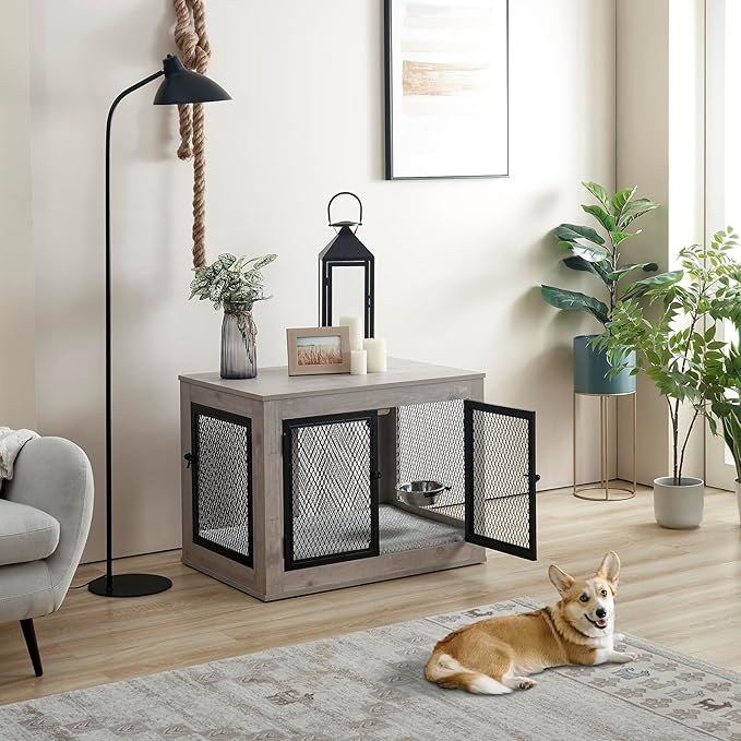 Memory Foam Dog Bed Crate Pad for Small Size Dog Soft Fluffy Kennel Pad Crate Mat for Dog Mattress Anti-Slip Comfy Puppy Bed for Pet 29x20.5 Inch,Grey