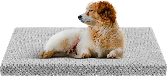Memory Foam Dog Crate Bed Pad for Medium Size Dog Soft Fluffy Kennel Pad Crate Mat for Pet Anti-Slip Comfy Puppy Bed for Dog Cage 36x22 Inch,Grey