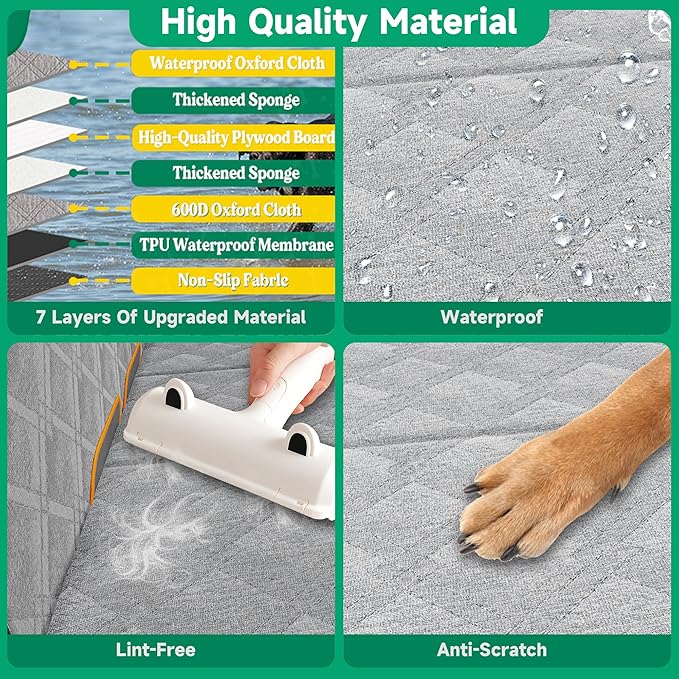 - 🐶【Waterproof And Wear-Resistant】 The dog car seat cover for the rear seat is waterproof, When soiled, it is simple to clean; and it with thicker wear-resistant fabric, resulting in a truck bed air mattress of higher quality and longer life.