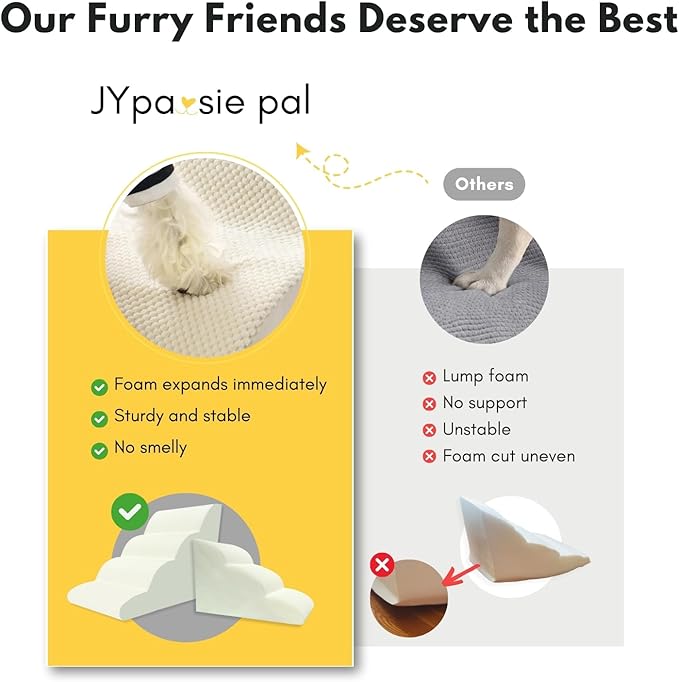 - Convenient & Easy Assembly: Our dog stairs with a non-slip bottom dotted with rubber for stable footing and a convenient built-in handle, making it easy to reposition the dog ramp wherever it's needed. Note: the dog ramp is vacuum-compressed for eco-friendly shipping, the dog stairs easily regain their shape. Please allow 24-48 hours for the foam to fully expand before use.