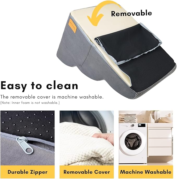 - Easy to Clean: The smooth zipper design makes it easy to remove the cover. Our dog stairs cover is made of high-quality non-slip corduroy, and the removable cover is machine washable. Note: Inner foam is not washable.