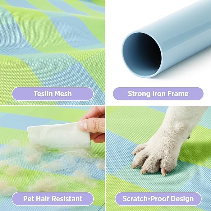 • High-Quality, Durable Materials: Constructed with a sturdy iron frame, this pet bed is built to last. The chew-proof design provides extra durability, while the heavy-duty Teslin fabric guarantees strength and longevity, ensuring your pet has a reliable place to rest for years to come.