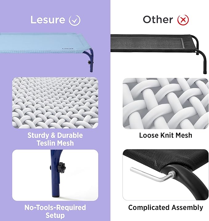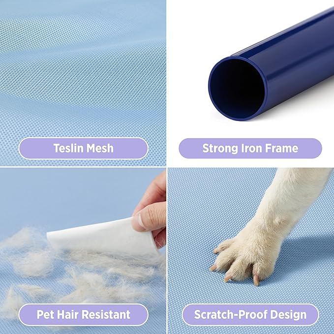 • High-Quality, Durable Materials: Constructed with a sturdy iron frame, this pet bed is built to last. The chew-proof design provides extra durability, while the heavy-duty Teslin fabric guarantees strength and longevity, ensuring your pet has a reliable place to rest for years to come.