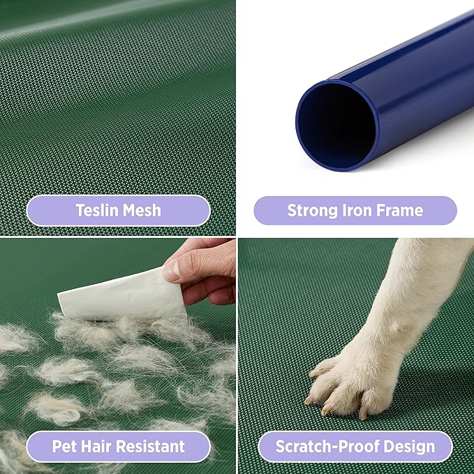 • High-Quality, Durable Materials: Constructed with a sturdy iron frame, this pet bed is built to last. The chew-proof design provides extra durability, while the heavy-duty Teslin fabric guarantees strength and longevity, ensuring your pet has a reliable place to rest for years to come.
