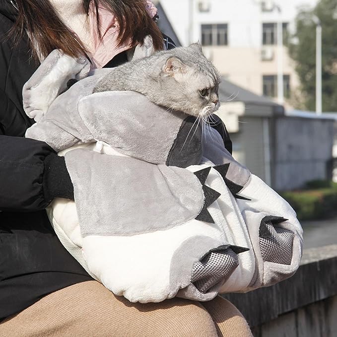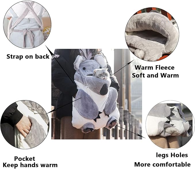 - CREATIVE DESIGN;Helps you carry your kitty around with you, let your baby calm down in this warm, cozy nestle.With pockets on the pet carrier,it could keep your hand warm.