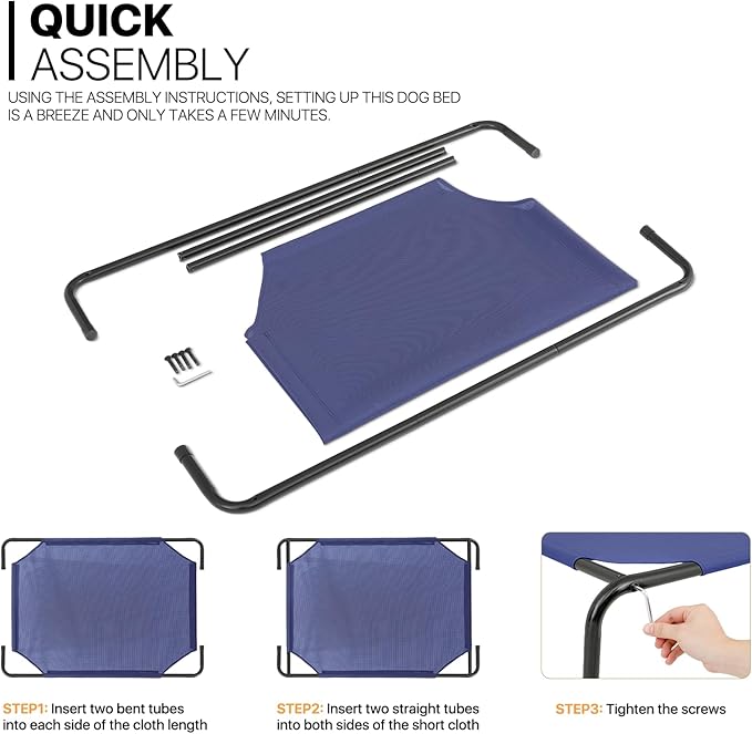 - Strong & Easy Assemble Dog Raised Bed - This sturdy dog bed is made of strong steel metal structure and has 4 anti-skid feet, making it ready for your beloved furry pets. It is also easy to assemble without extra tools, and by following the instructions, all the assembly can be finished by your hand in a few minutes.