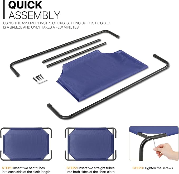 - Strong & Easy Assemble Dog Raised Bed - This sturdy dog bed is made of strong steel metal structure and has 4 anti-skid feet, making it ready for your beloved furry pets. It is also easy to assemble without extra tools, and by following the instructions, all the assembly can be finished by your hand in a few minutes.